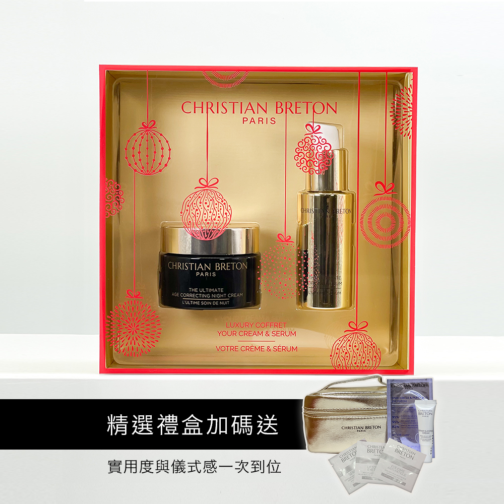 禮盒內含: ⟝極緻豪華抗老夜霜50ml ⟝極緻豪華抗老精華液30ml